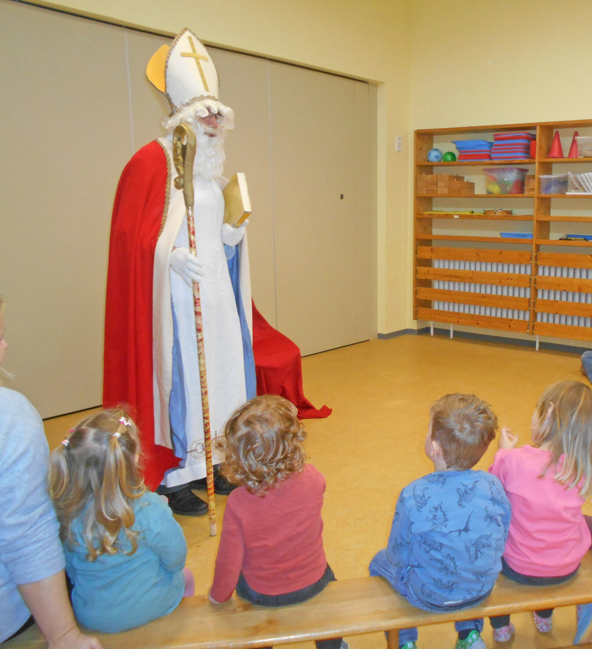 Kurz darauf klopfte es an der Tür – der Nikolaus war zu Besuch. Mit großer Freude sangen die Kinder Lieder für Ihn und sprachen Gedichte. Der Nikolaus hatte einen Sack dabei, aus dem er die verschwundenen Socken hervorholte. Sie waren prall gefüllt, und jedes Kind durfte seine eigenen Socken wieder in Empfang nehmen. Besonders gespannt lauschten die Kinder dem Nikolaus als er eine Geschichte erzählte. Er erzählte davon, wie er anderen Menschen geholfen und Gutes getan hat.